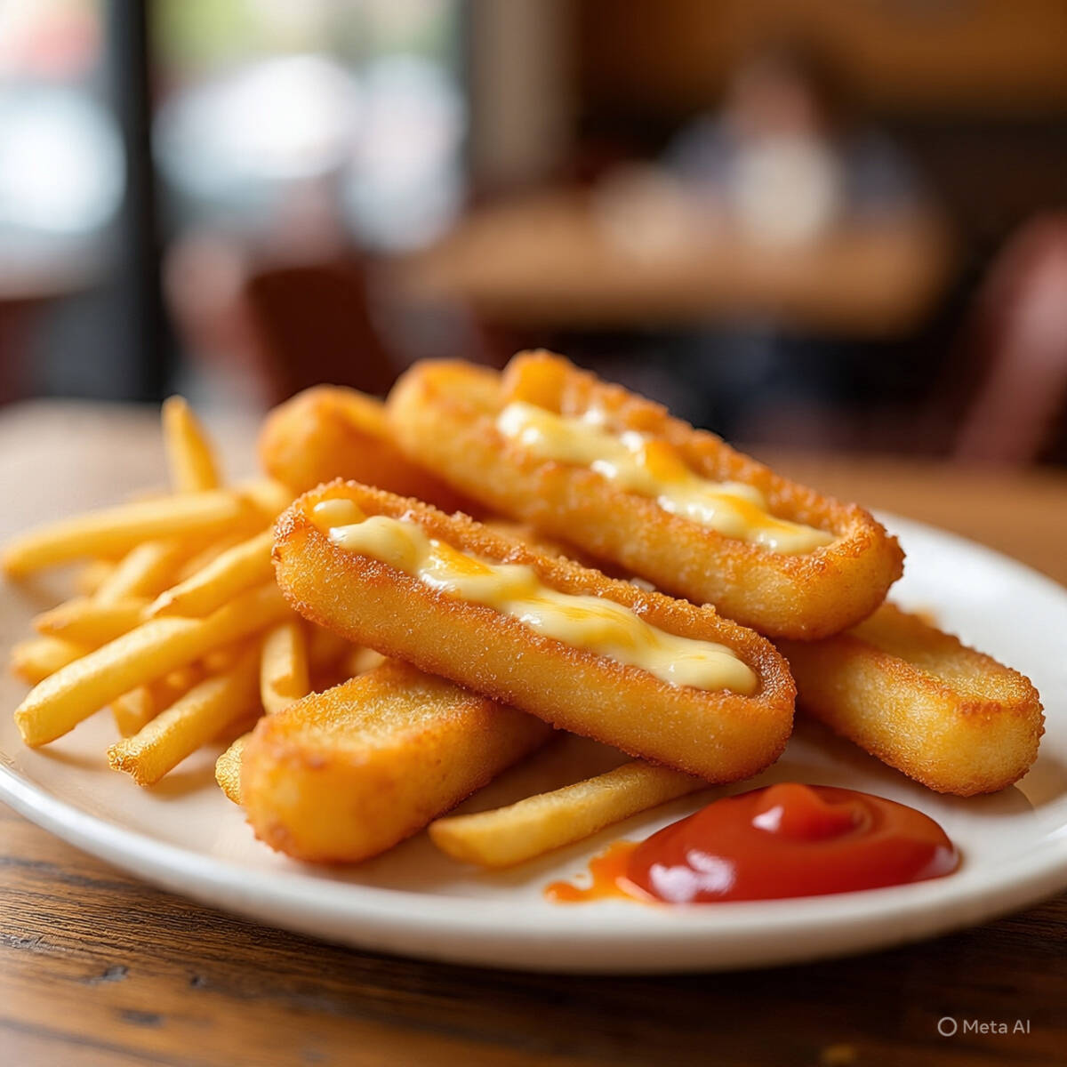 6 dedos de queso con papas a la francesa y catsup.