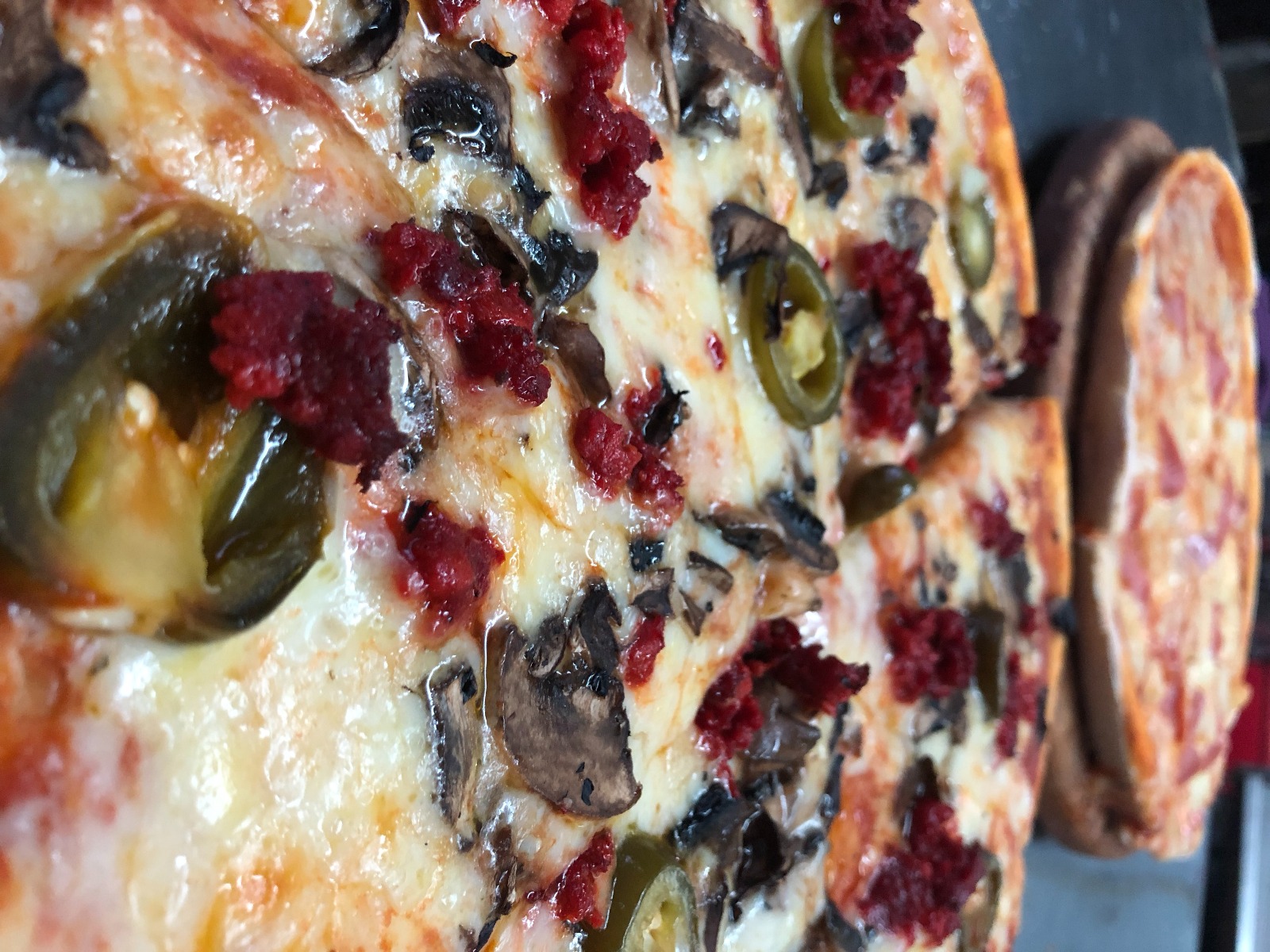 Chorizo, champiñón y chile.