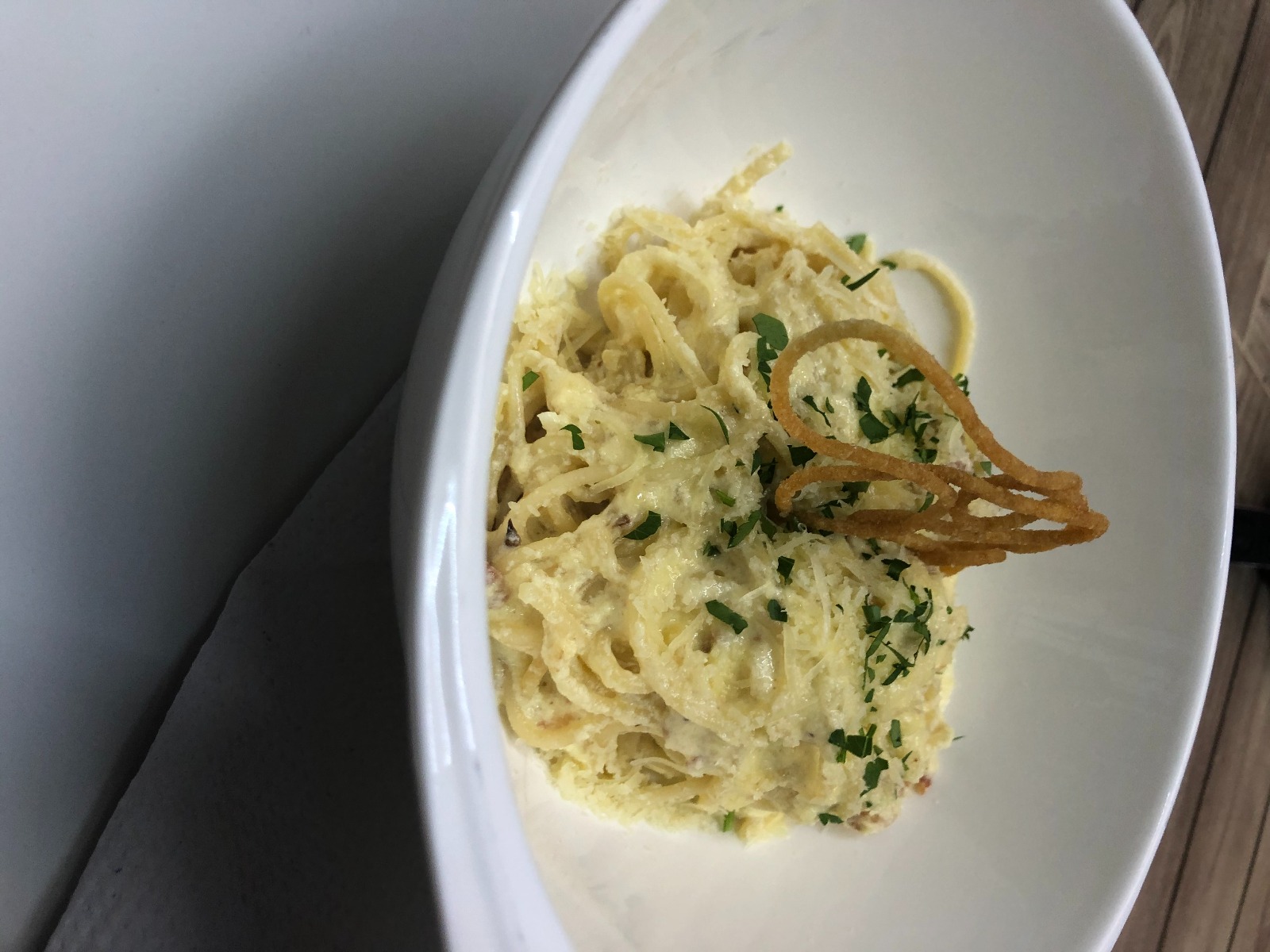 Pasta Alfredo con opción de camarones o pollo.