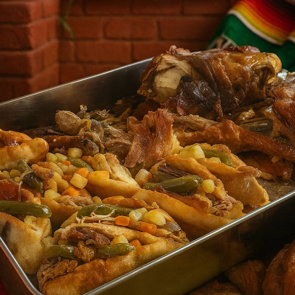 bolillo de relleno de pollo preparado en horno artesanal mas chilate