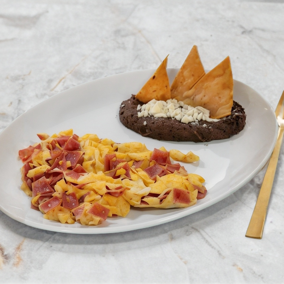 3 piezas acompañado de arandano con crema chantilly