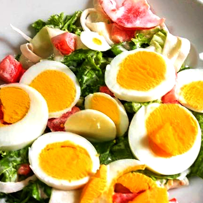 Lechuga, jitomate, cebolla, pepino y 2 pzas. de huevo entero cocido acompañada de aderezo de tamarindo.