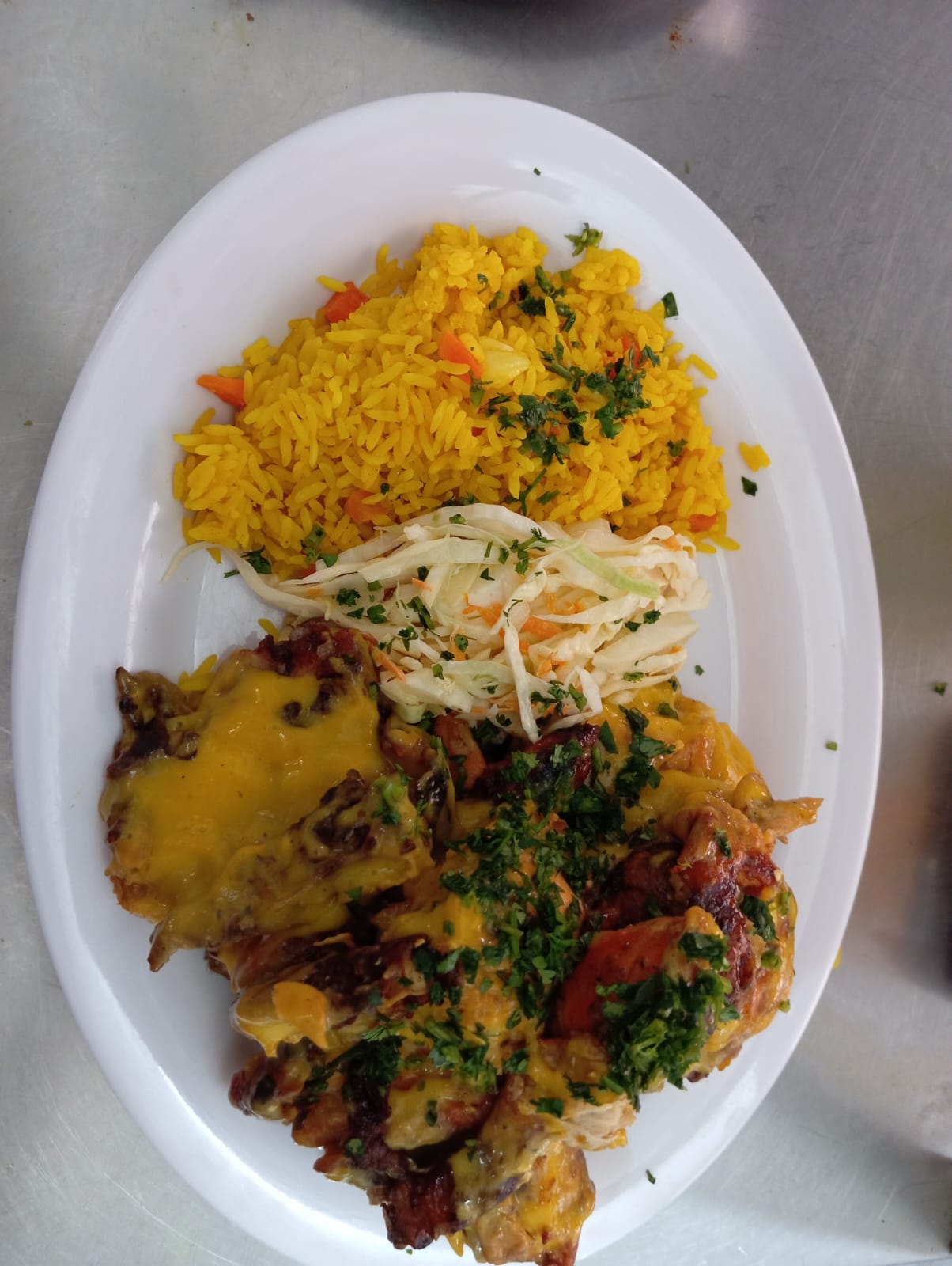 POLLO ACOMPAÑADO CON GUARNICIÓN DEL DÍA