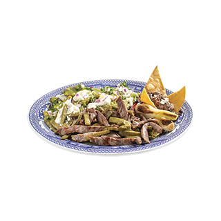 Comal de Arrachera con papas fritas, guacamole y chiles toreados 300 g