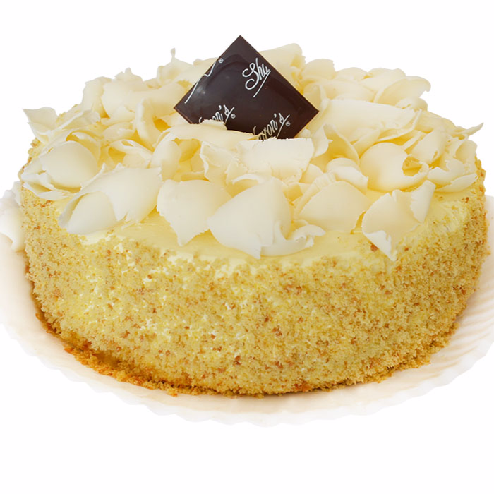 Pastel esponjoso de vainilla bañado en jarabe de la casa con rompope, relleno de crema batida cubierto con rompope natural y decorado con hojuelas de chocolate blanco y pan molido. 8-9 Pociones.