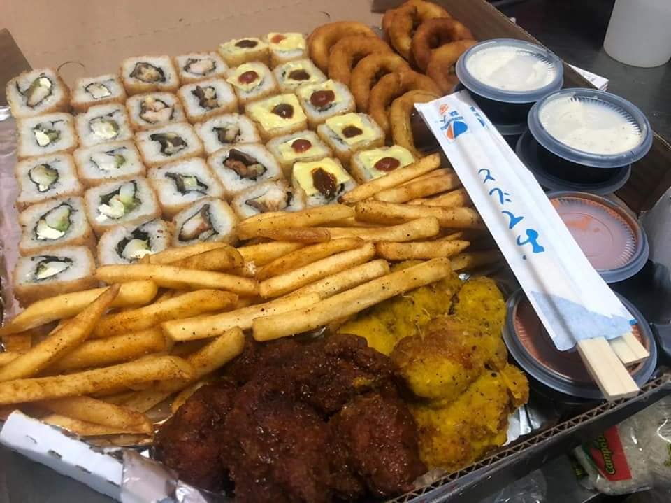 Contiene 3 rollos del menú (30 pzas), papas aros de cebolla y 12 pzas de boneless.