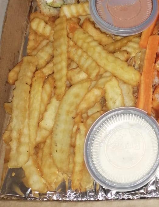 Contiene 3 rollos del menú (30 pzas), papas aros de cebolla y 12 pzas de boneless.