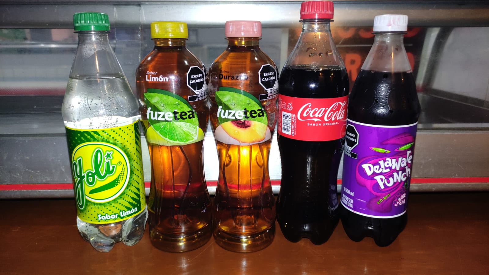 Refresco de 600 ml, Coca cola, Yoli y Delaware punch.