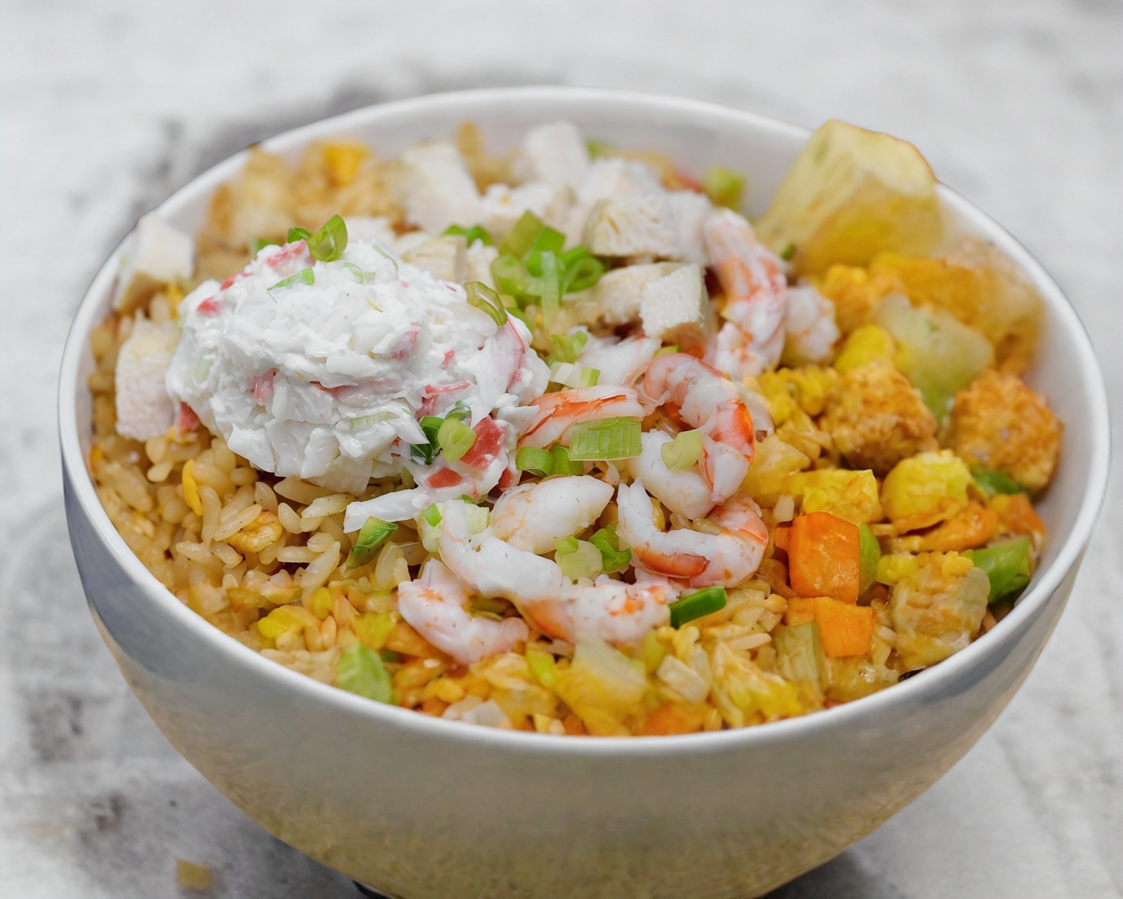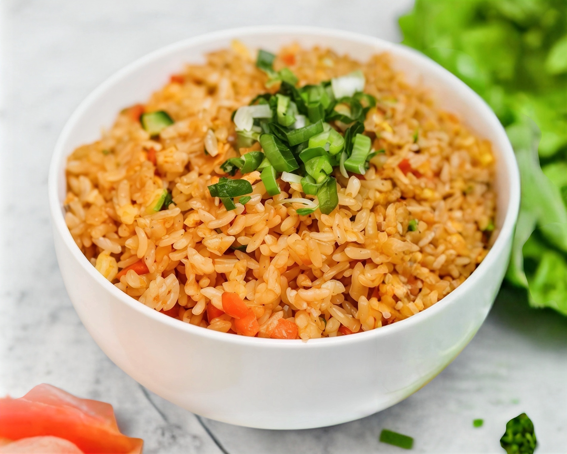 Arroz frito con vegetales.