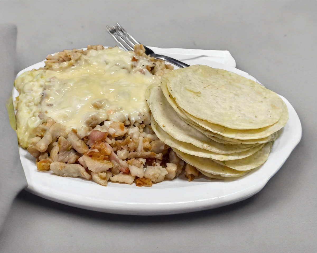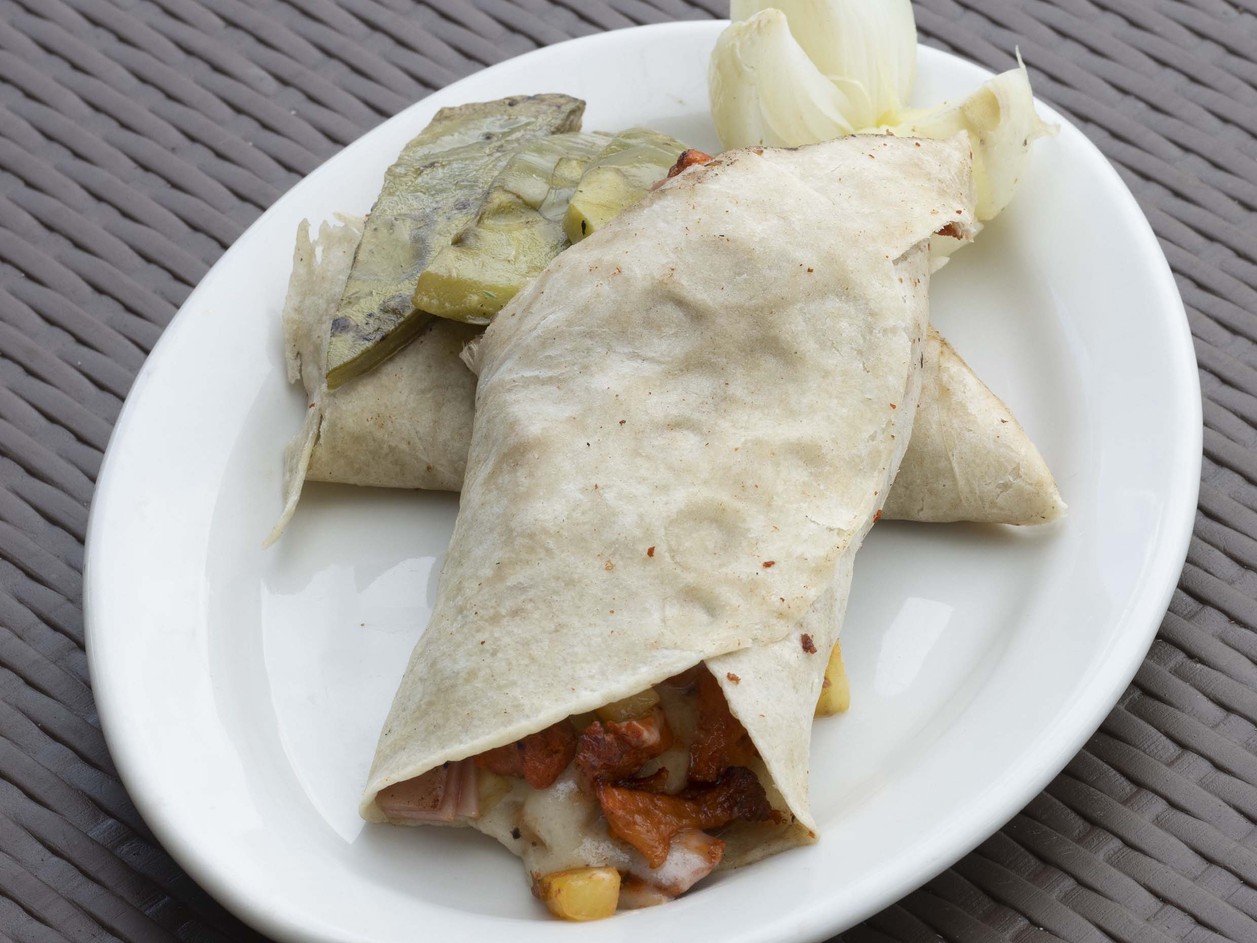 Pastor y queso en tortillas de harina.