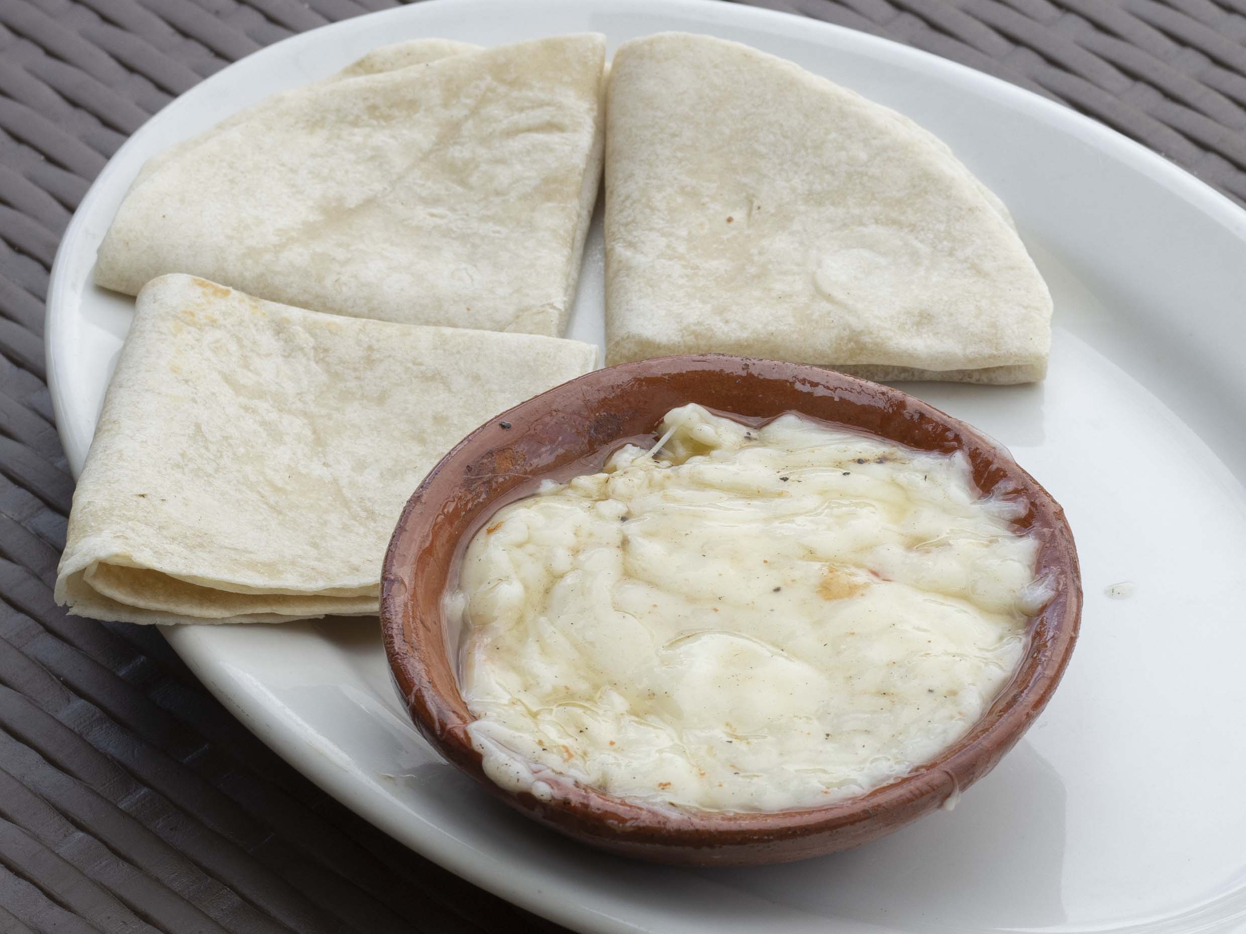 Queso fundido con chorizo.