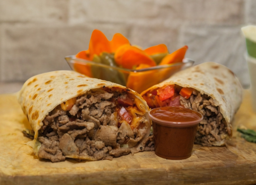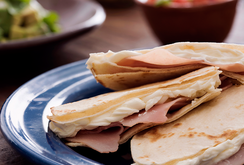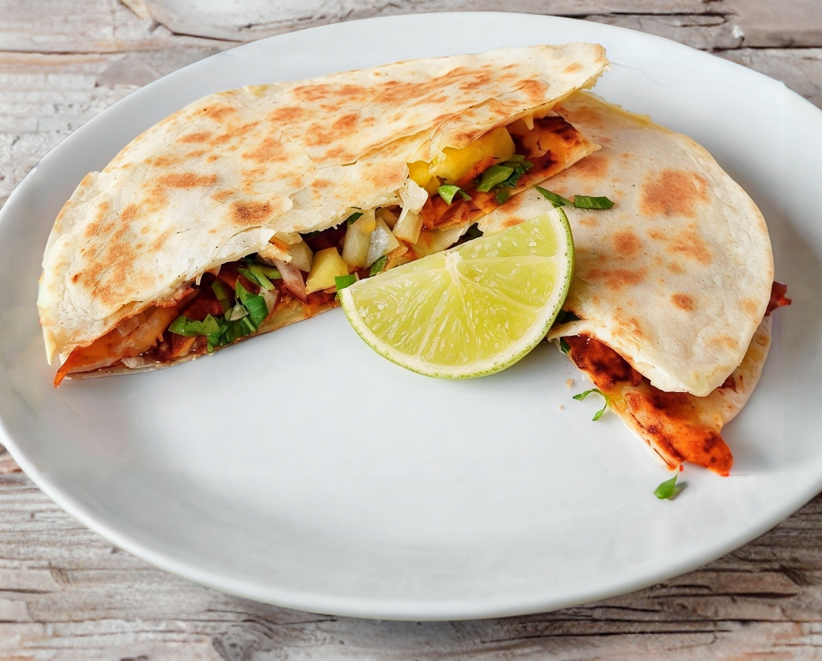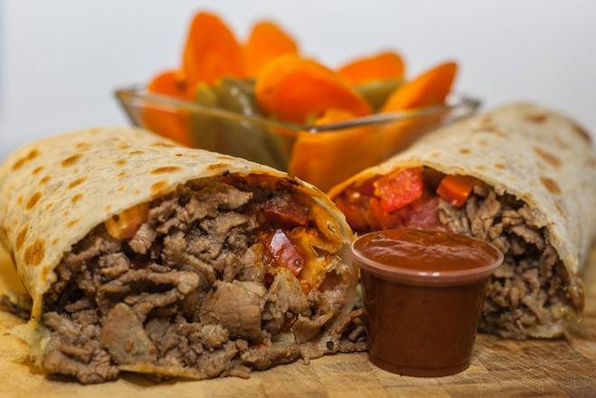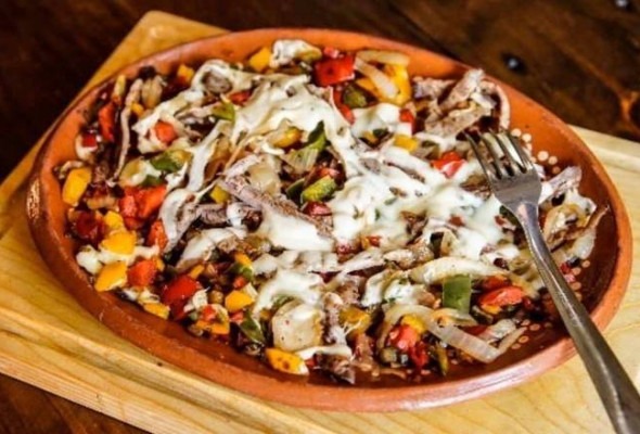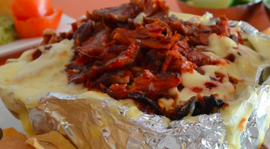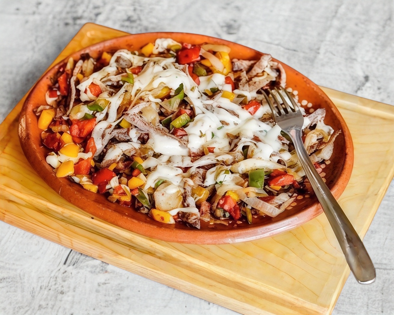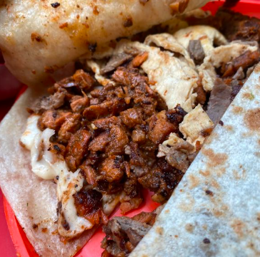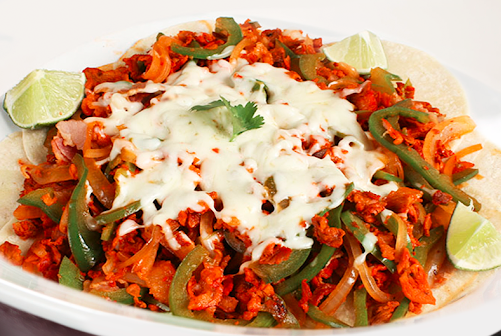 Cebolla, morrón,jitomate, piña, champiñon, elote, jalapeño, nopales, aguacate, queso con tortilla de harina.