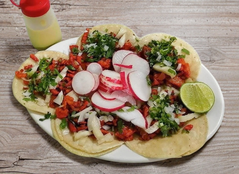 Incluye verduras, rabanos, limones, tortillas, salsa verde y roja.