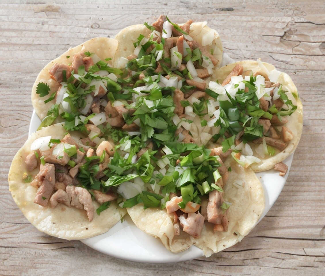 Chuleta, pastor, cebolla, champiñon, chile jalapeño y queso.