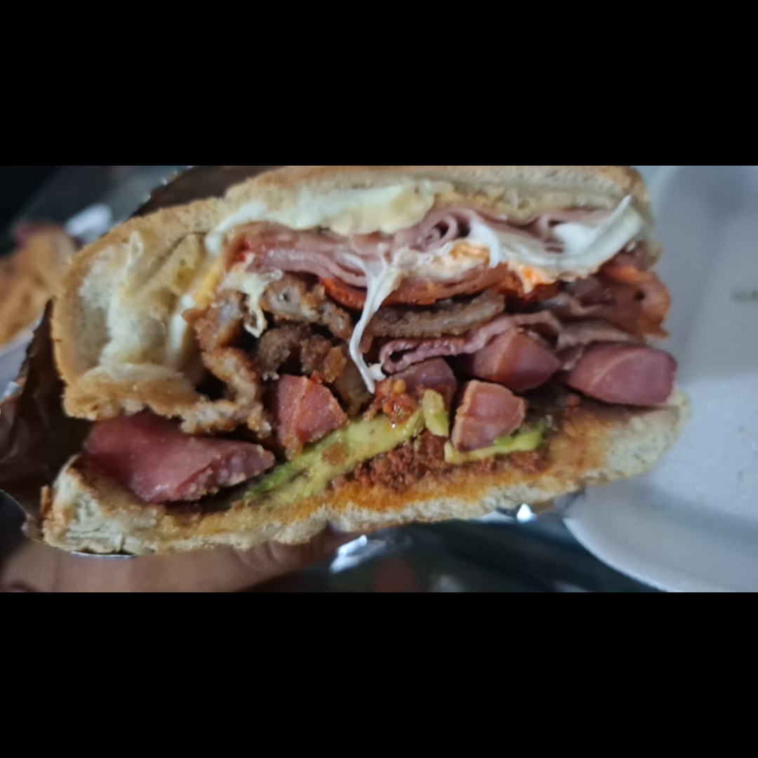 Milanesa, jamón, salchicha, chorizo, queso Oaxaca y aguacate.