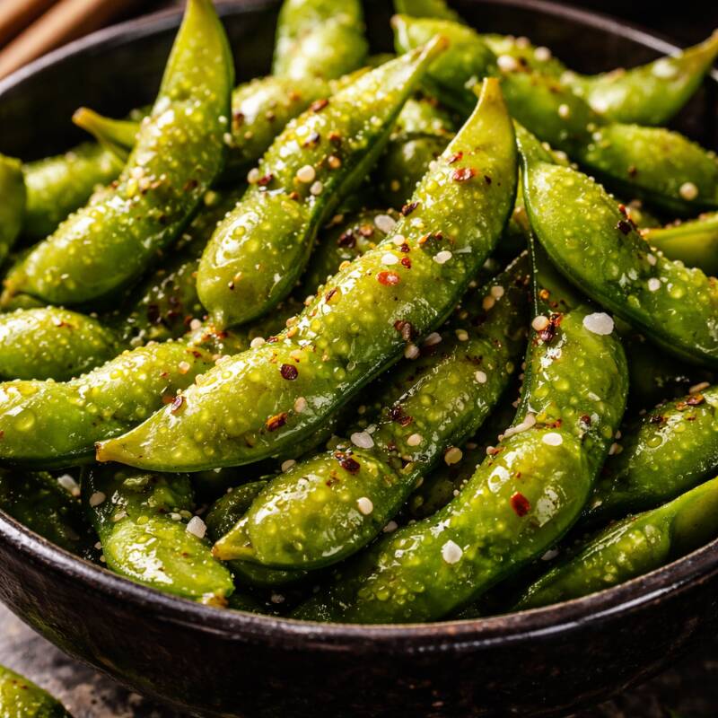 Frijoles de soya. Pídelos al vapor o asados con shichimi