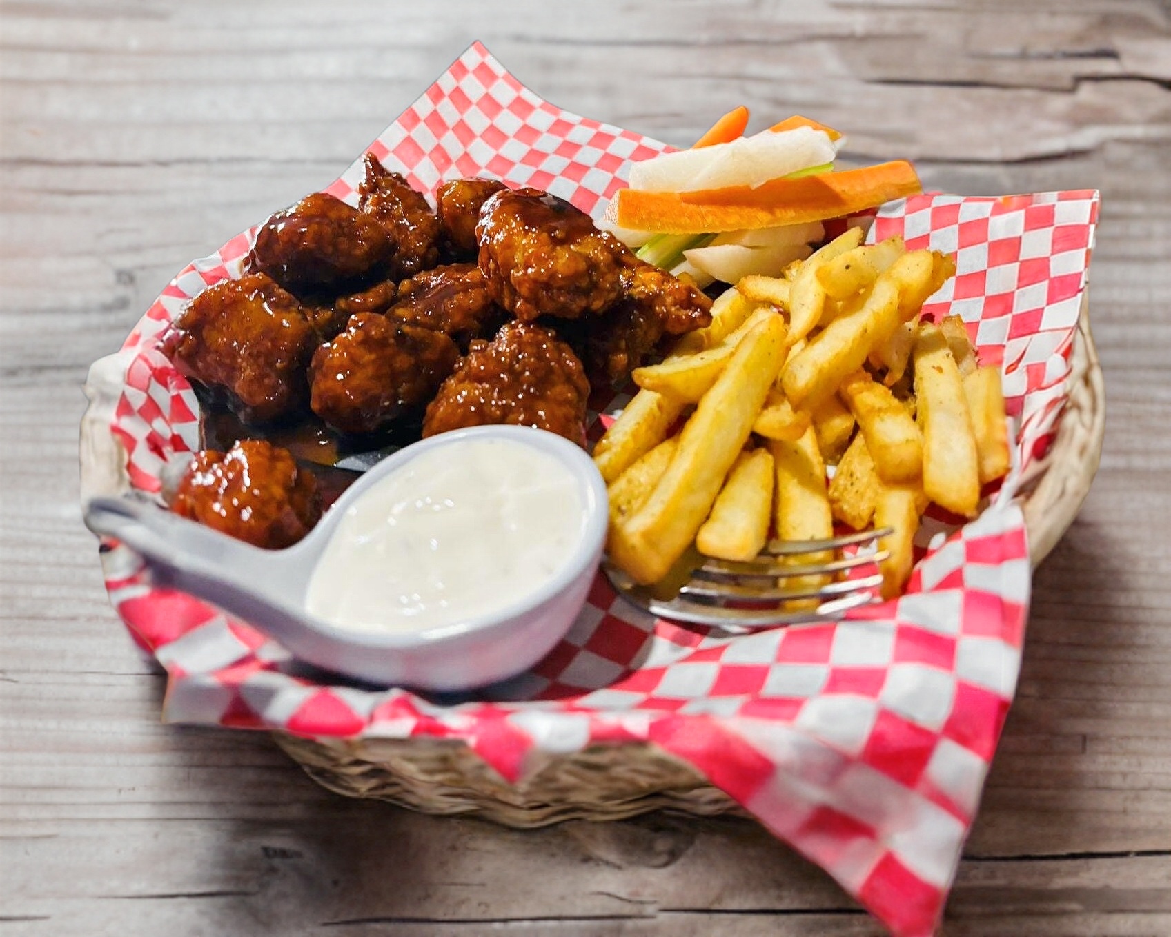 1kg Boneless con papas a la francesa, ranch y verduras