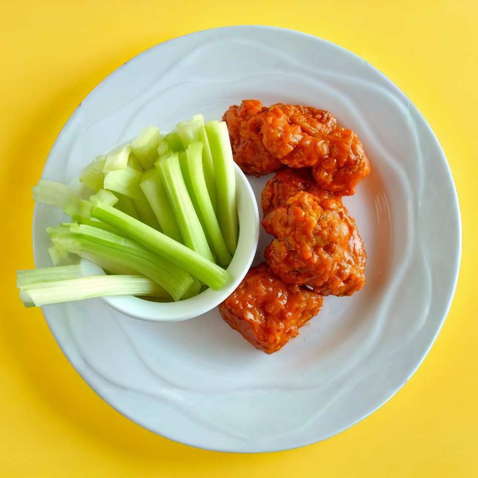 1.245 kg de alitas bañadas en su salsa favorita, acompañadas de verduras bien fresquecitas y aderezo.