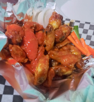 Alitas 1.765 kg bañadas en salsa a elegir, acompañadas de verduras y aderezo.