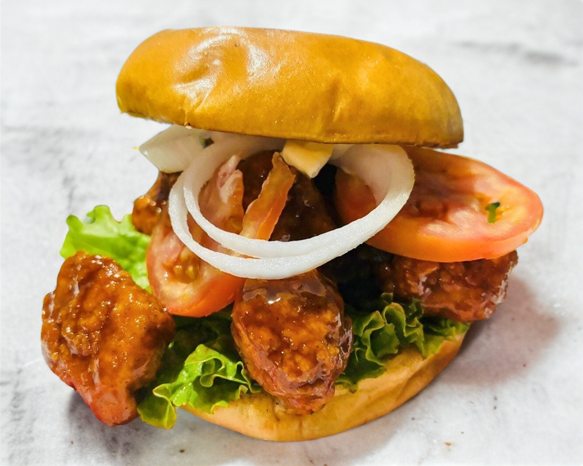 Jitomate, lechuga, cebolla, bonneles con tu salsa favorita, tocino, queso gouda y queso chedar.