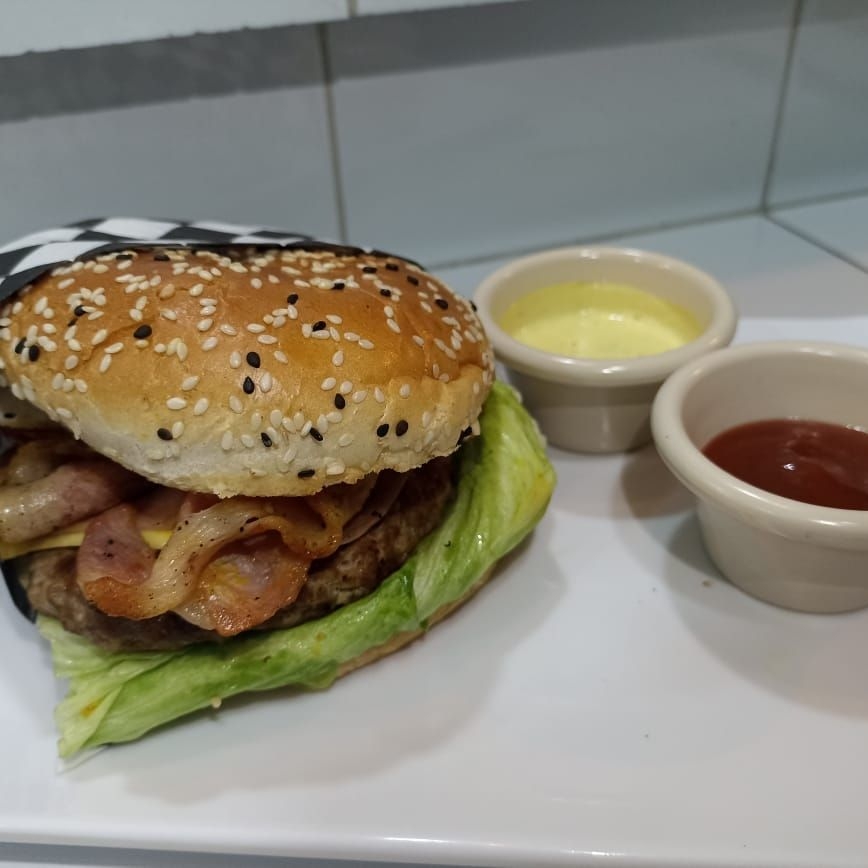 Carne de res, Tocino, Queso tipo americano, Aderezos y Verdura