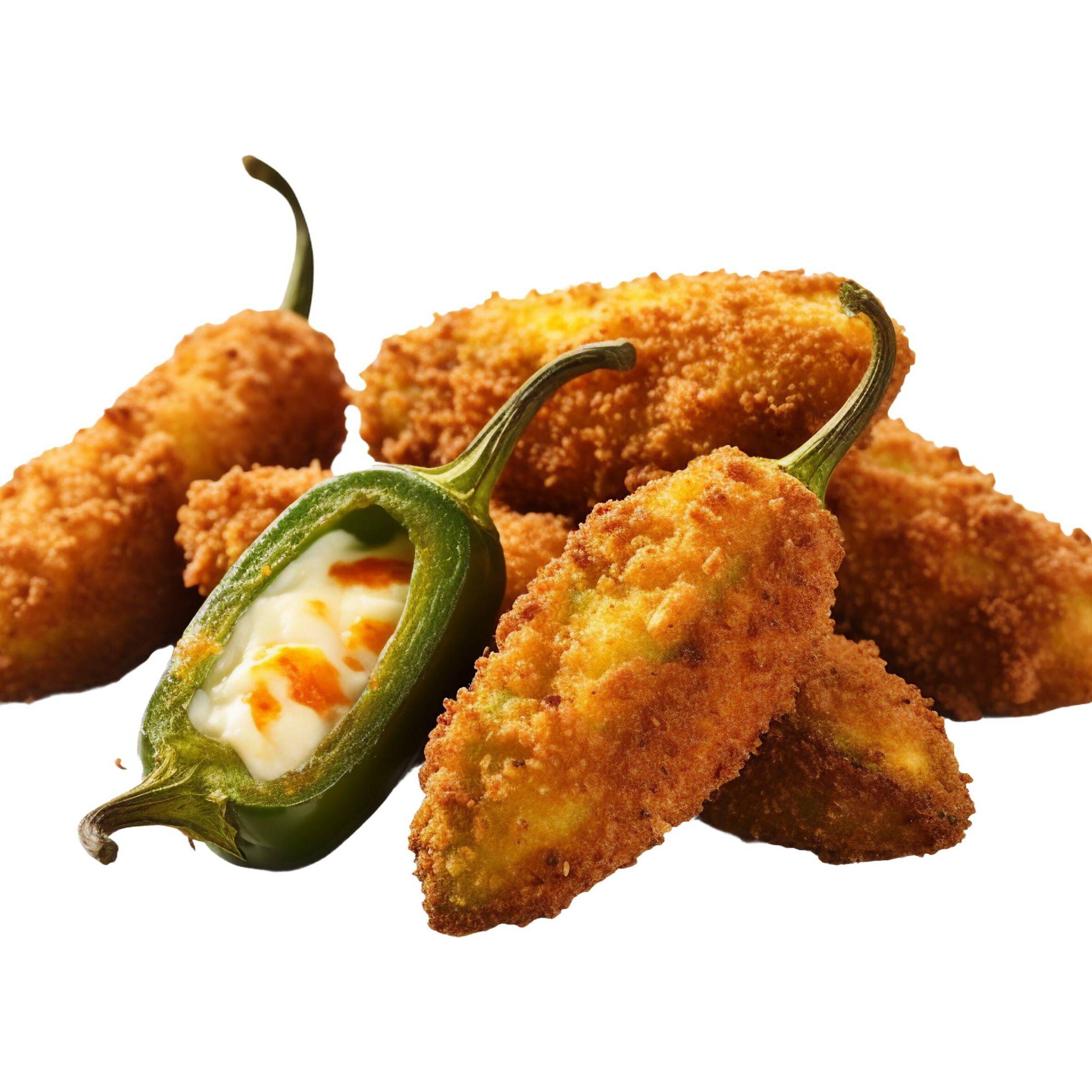 5 Piezas de jalapeños empanizados y rellenos de queso crema.