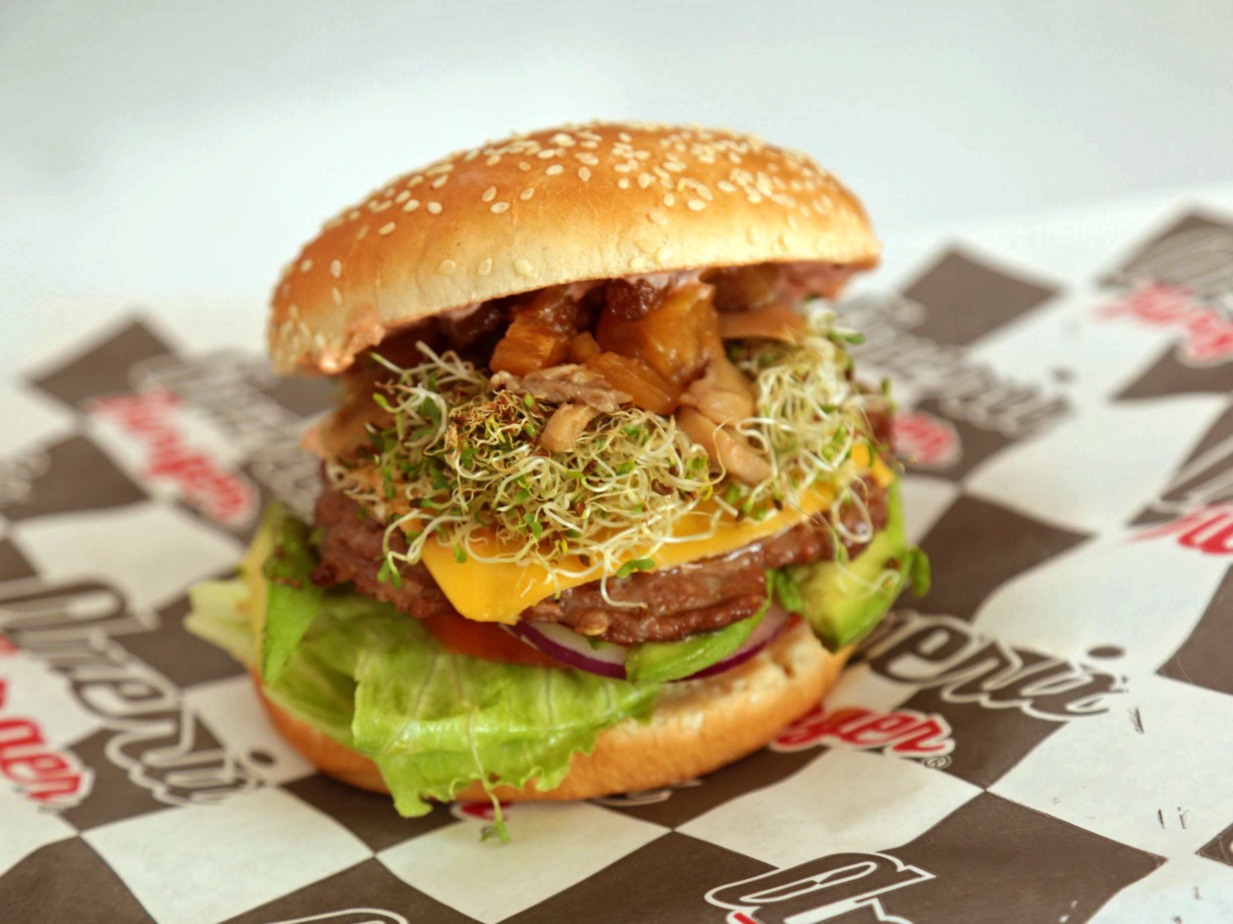 Hamburguesa de Pechuga de pollo, tocino y queso blanco