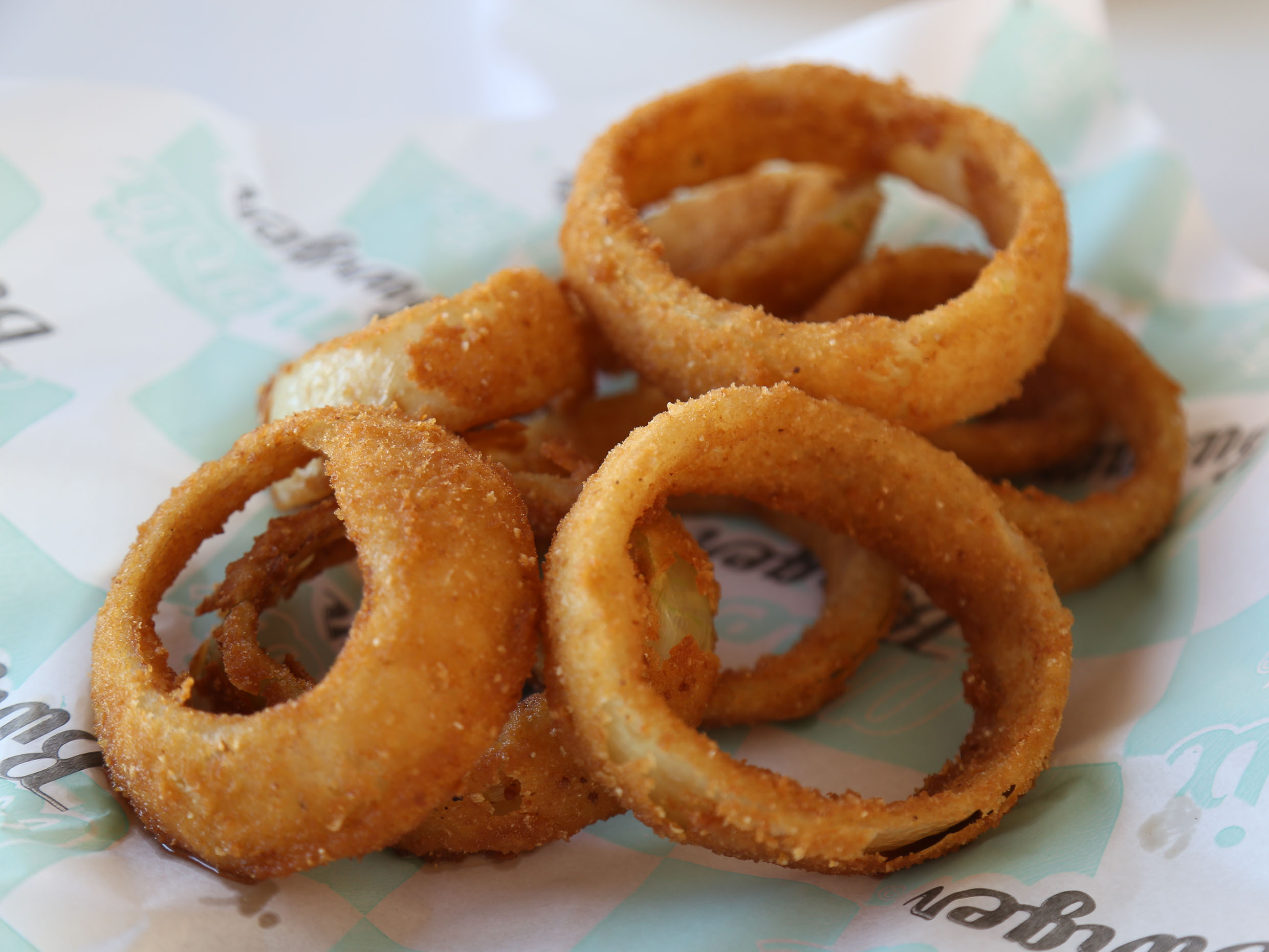 Regular con aros de cebolla empanizados, tocino y salsa BBQ