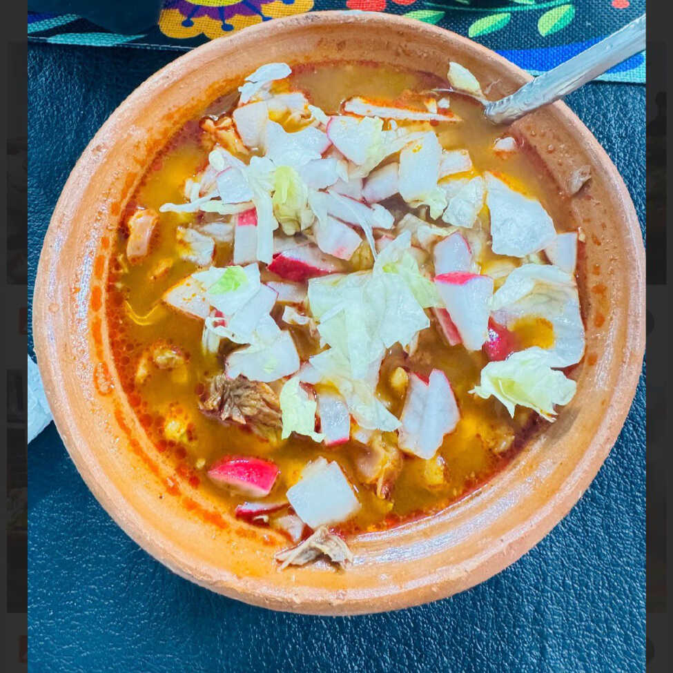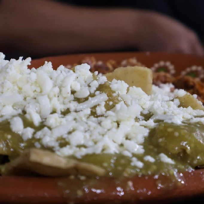 Tortilla dorada, deshebrada, adobo y cueritos.