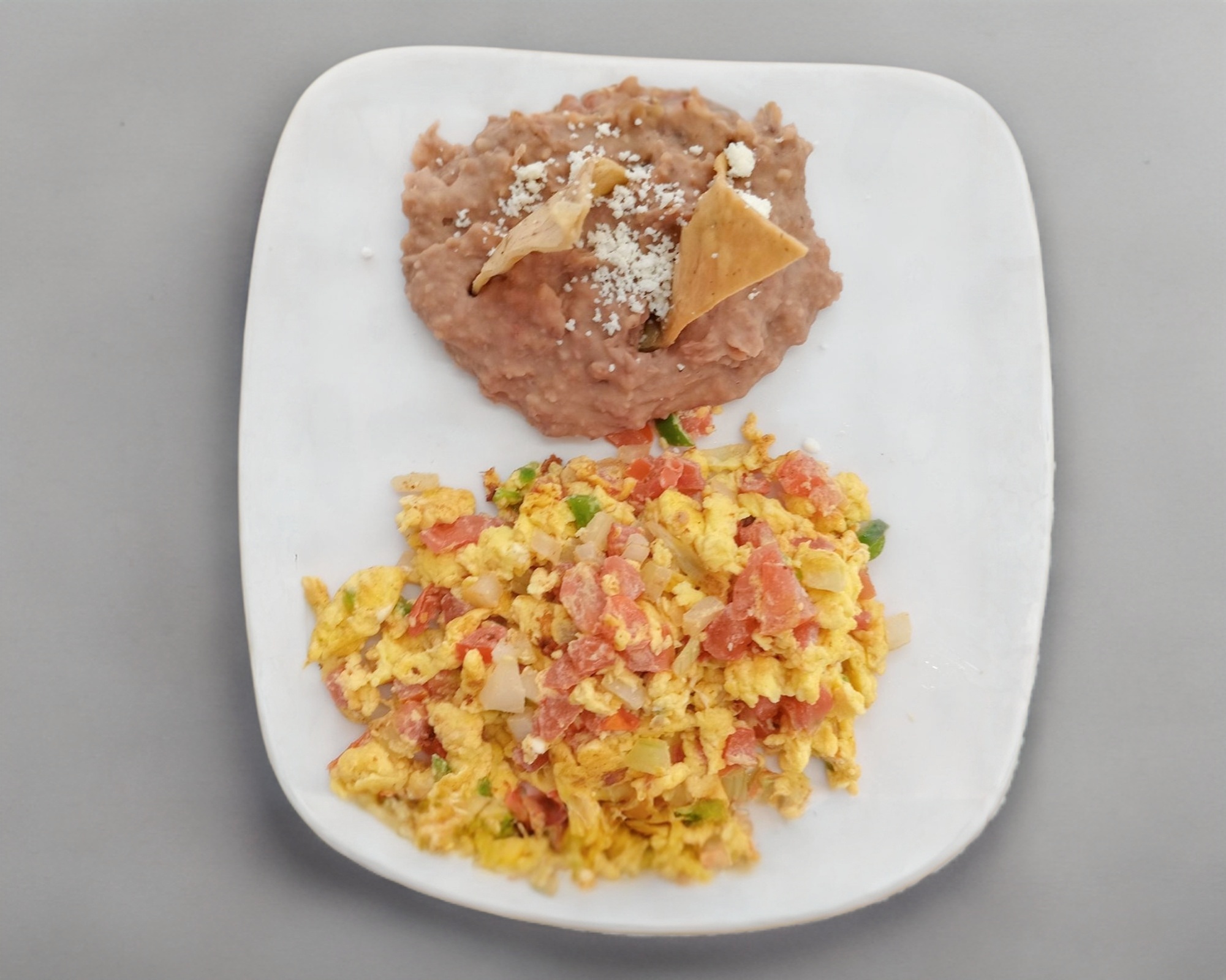 Los tradicionales huevitos revueltos con jitomatito, cebollita y chile serrano