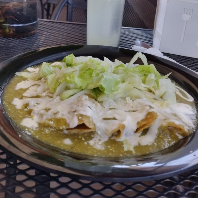 Orden de 4 Tacos Dorados rellenos de Queso, bañados de salsa verde. Incluye Sopa o Arroz para acompañar.
