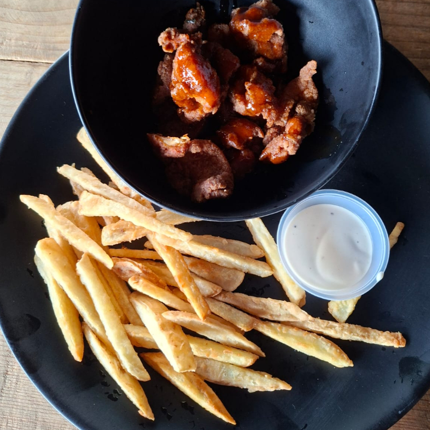 🍗🔥 Boneless Ane’Ane + Papas – Combo que no falla 250g de boneless crujientes por fuera y jugosos por dentro, bañados en nuestra salsa especial estilo Ane’Ane 🤤 Acompañados de: 🍟 Papas doraditas naturales y bien sazonadas 🥣 Dip cremoso para darle el toque final El combo perfecto para ver el partido, echar chela o quitarte el antojo fuerte 😏🔥