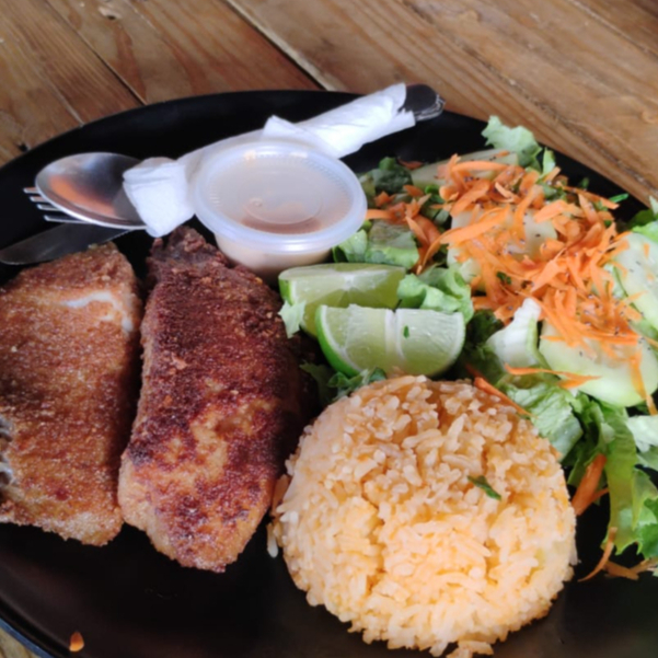 Pescado Empanizado, con arroz y complementos extras