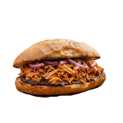 Carne de puerco empanizada con queso amarillo, lechuga, cebolla, jitomate, aguacate, mayonesa y crema.