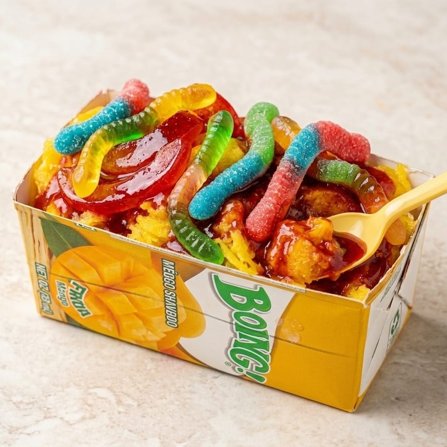 Boing congelado acompañado con gomitas coronado con chamoy.