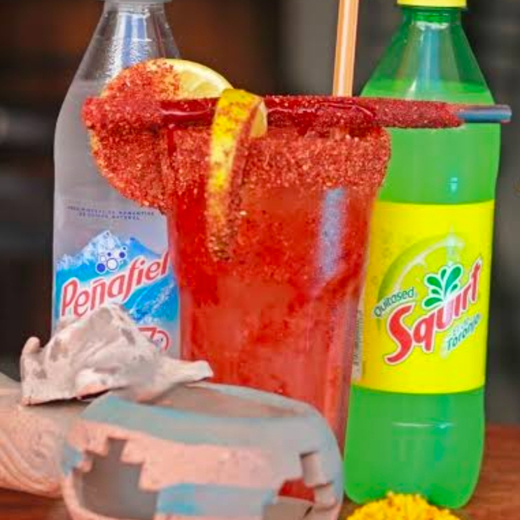 Refrescante bebida a base de hielo, escarchado con limón y chamoy.