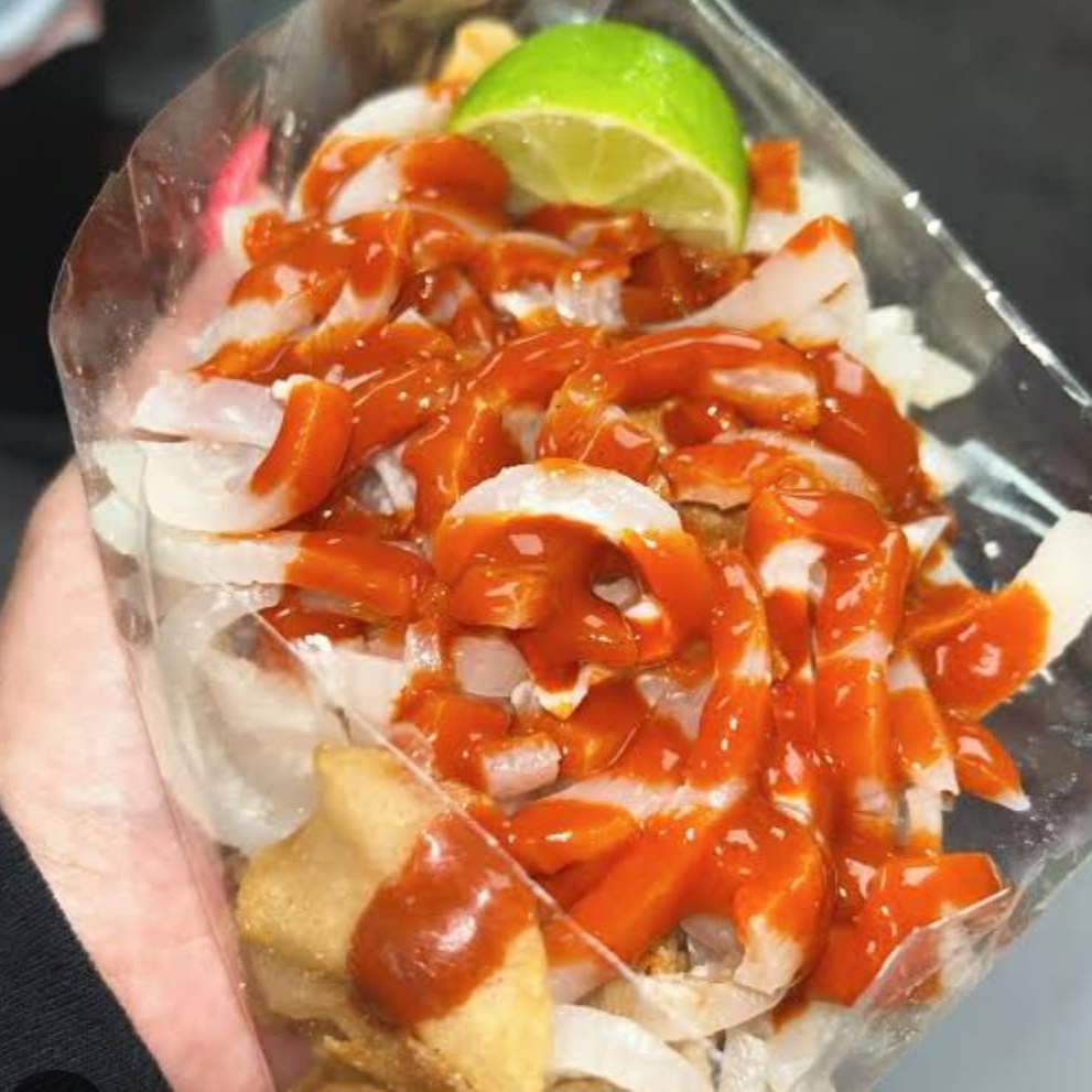 cuerito, verdura y salsa.