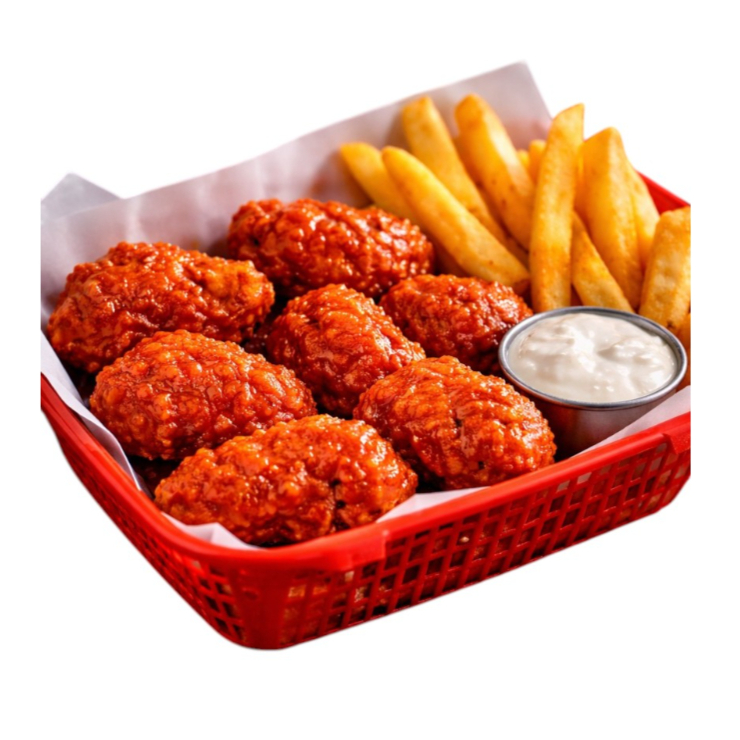 200 gramos de pechuga de pollo sin hueso bañadas en la salsa Bufalo. Este combo incluye papas a la francesa.