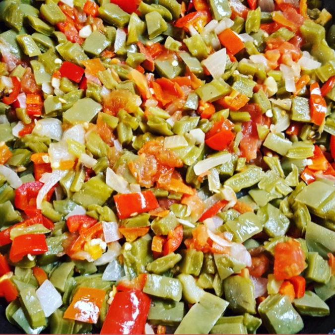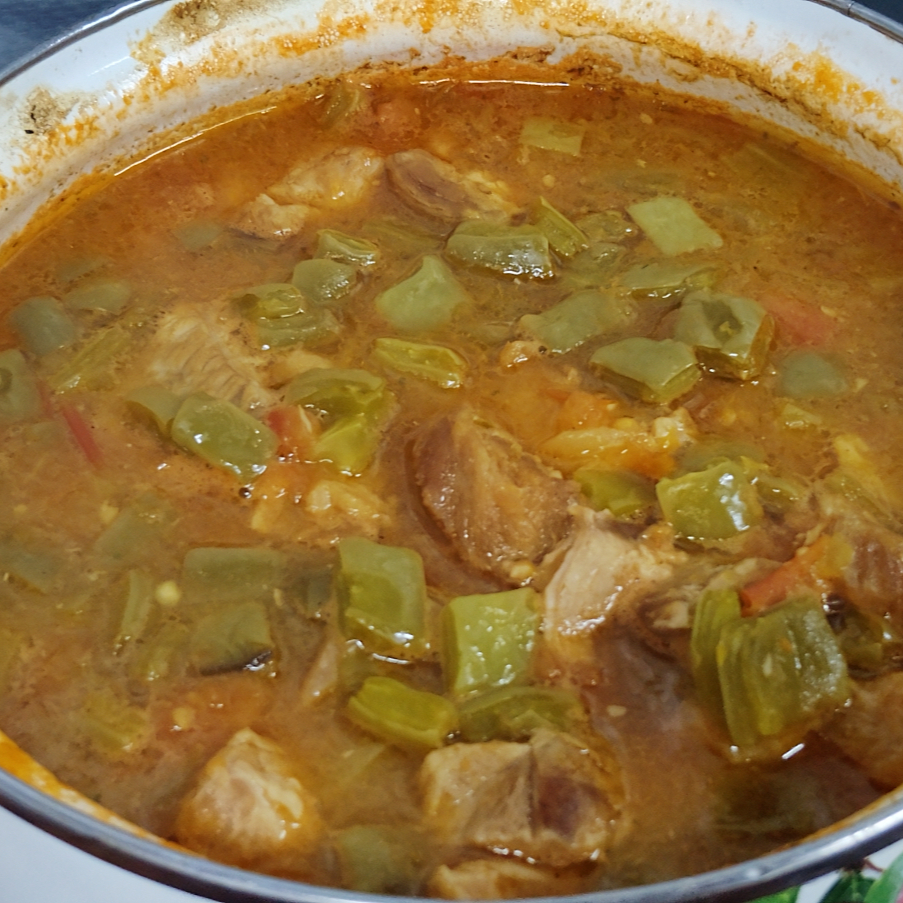 trocito de puerco con nopales en salsa