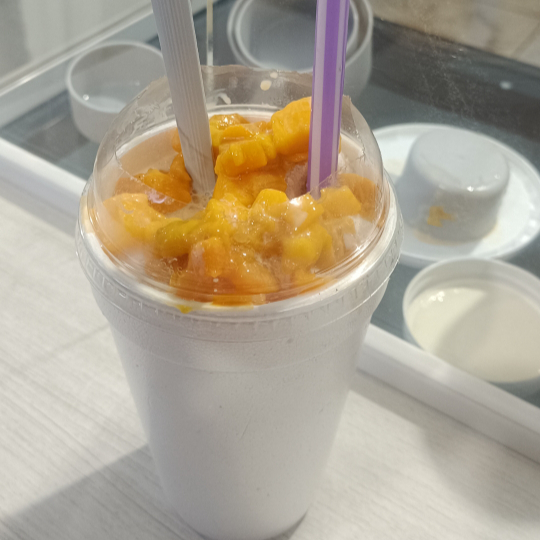 Delicioso y refrescante raspado artesanal a base de mango natural, concentrados de leche y jarabes elaborados por la casa