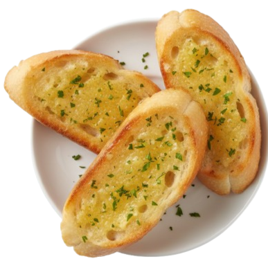Orden de tres (3) rebanadas de pan tostado con mantequilla de ajo.