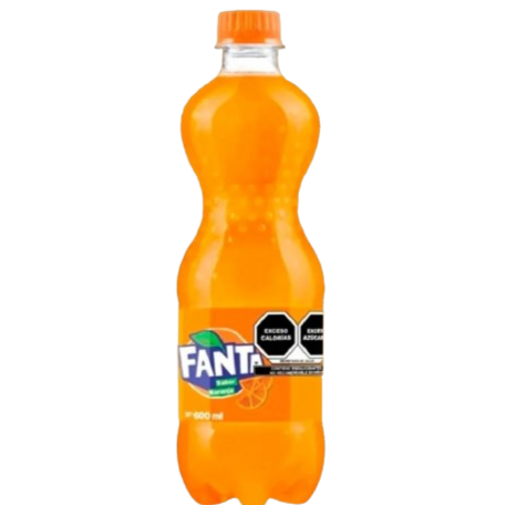 Fanta naranja 600 ml envase pet.