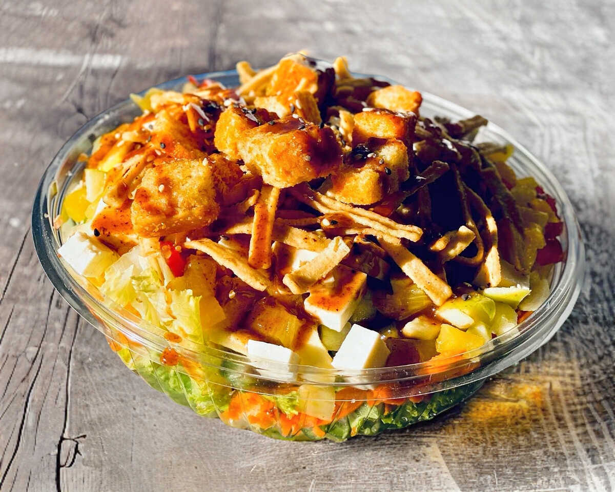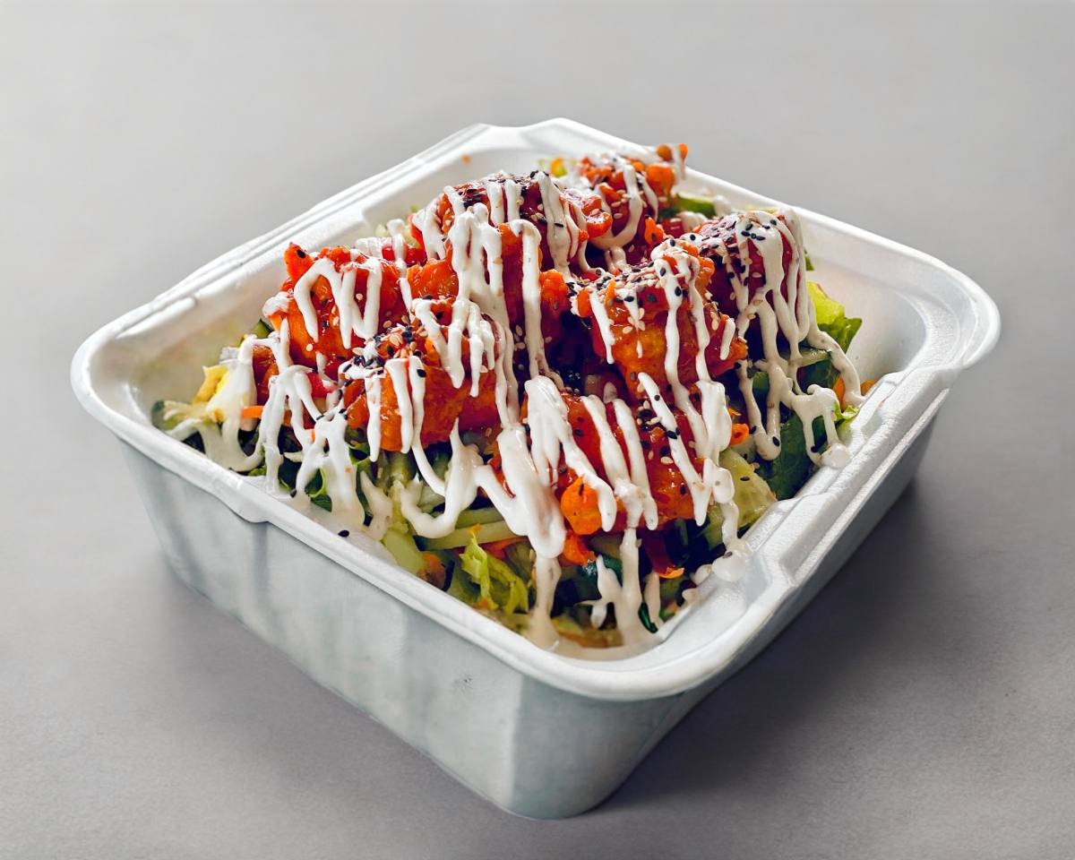 Boneless, lechuga, jitomate, zanahoria, aderezo ranch y mezcla de ajonjolí.