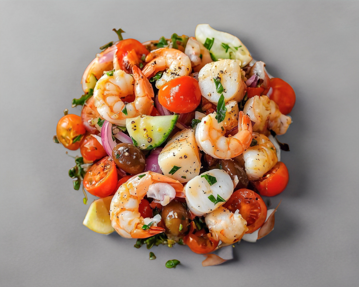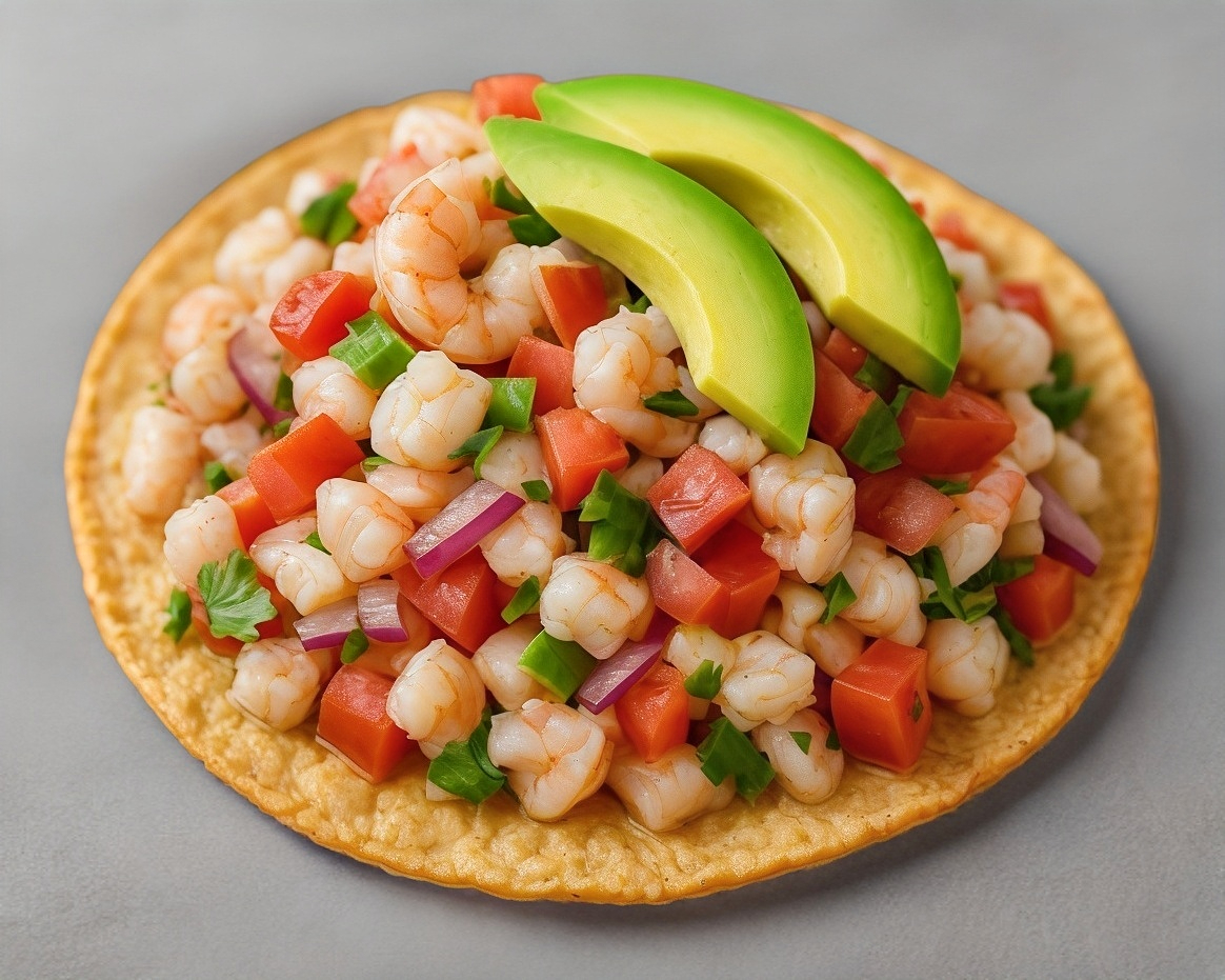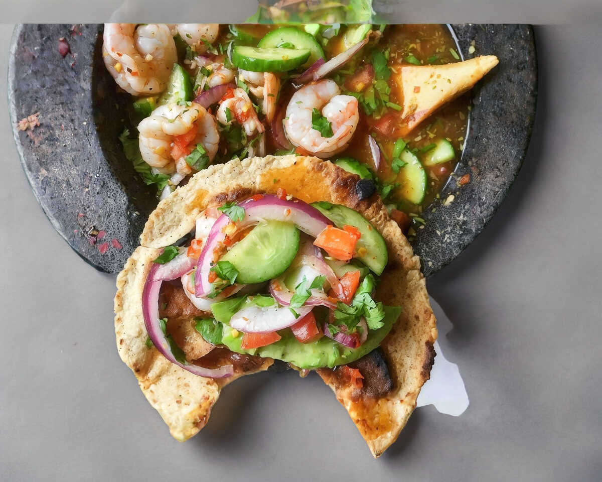 camaron con pulpo , ostion con catsup, verduras y aguacate