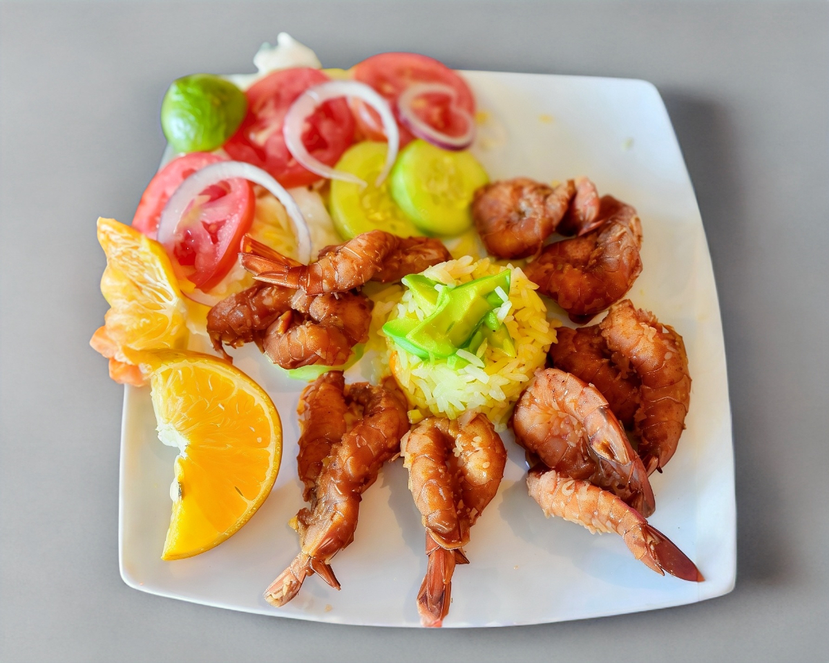camaron,pulpo,surimi con verduras , aguacate marinado con vinagre de la casa y ajonjoli