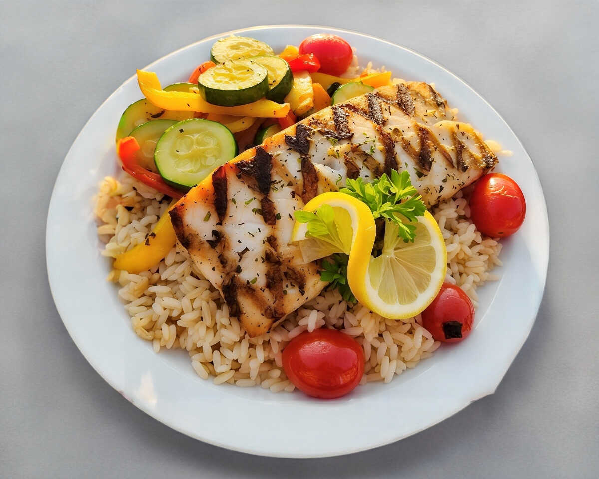 con su lechuga verduras y arroz con aceite de oliva y limon
