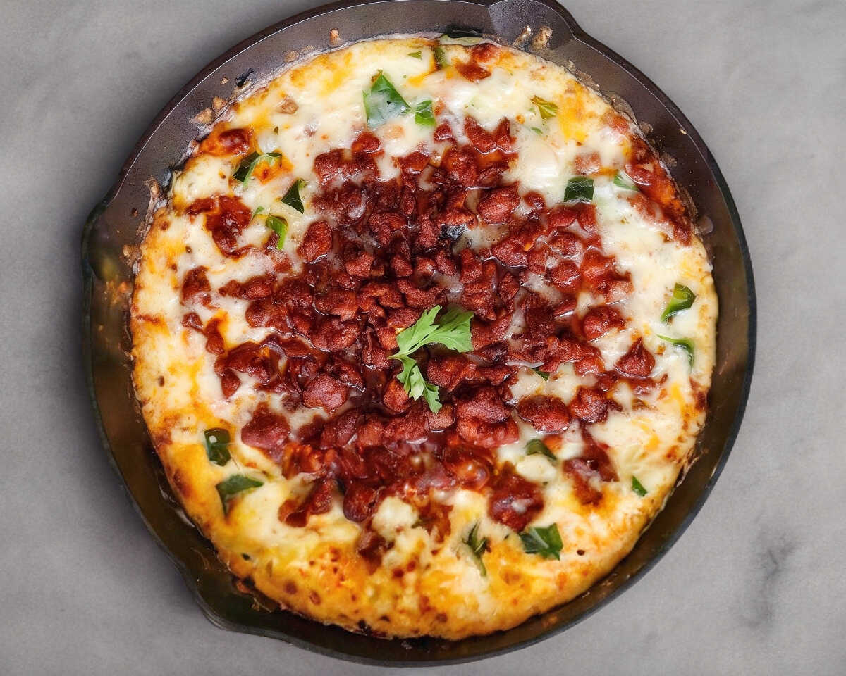 molcaje de arrachera,fajitas de pollo,chistorra,camarones al mojo de ajo,nopal,cebolla,chiles gueros,queso,salsa roja.