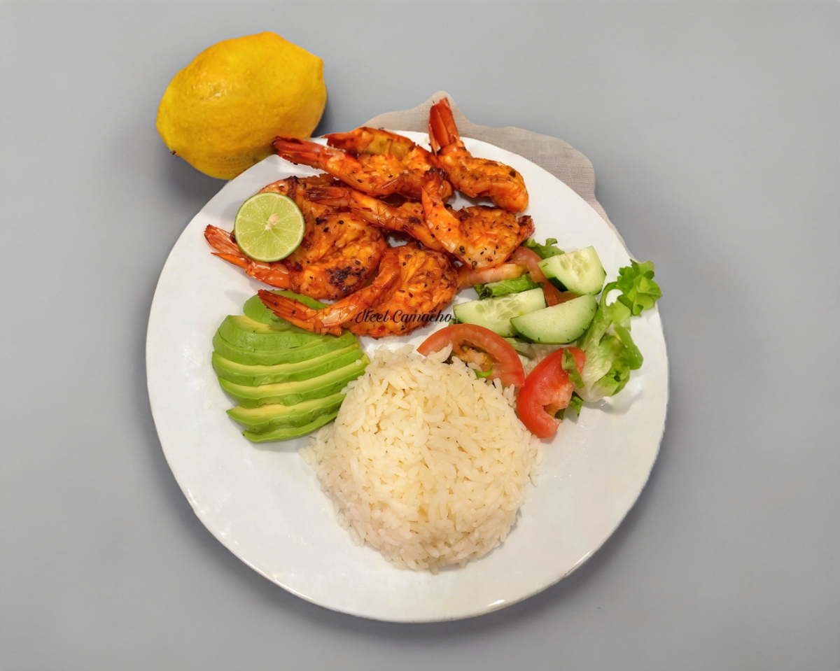 con su lechuga verduras y arroz mojo de ajo y vino blanco