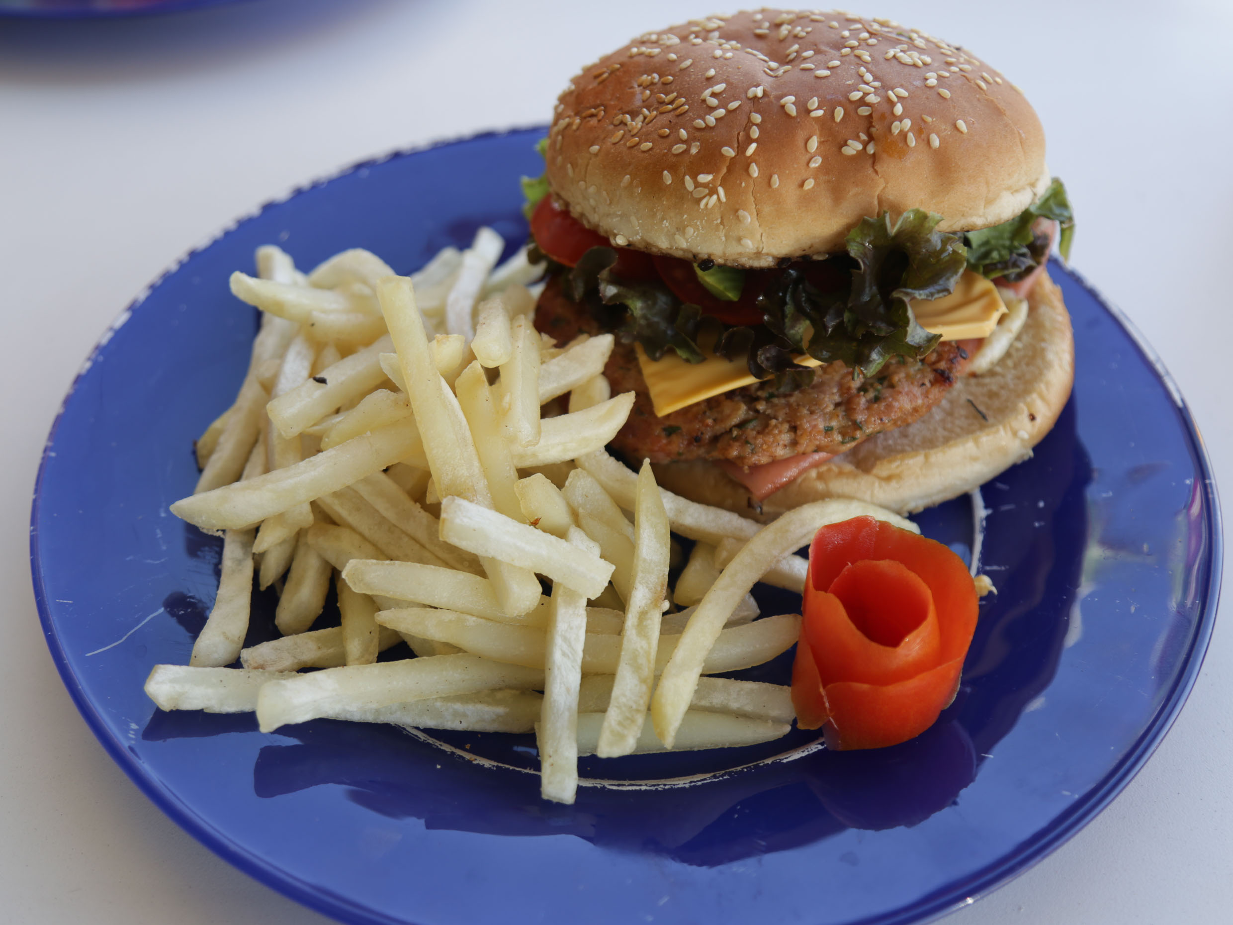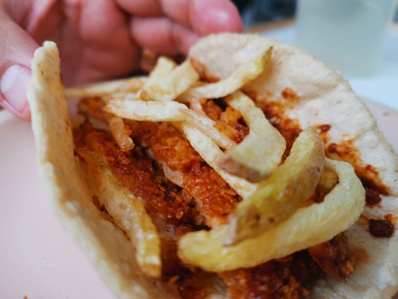 2 tortillas con milanesa de pollo o cerdo acompañado de papas a la francesa, lechuga, limón y salsa de la abuela