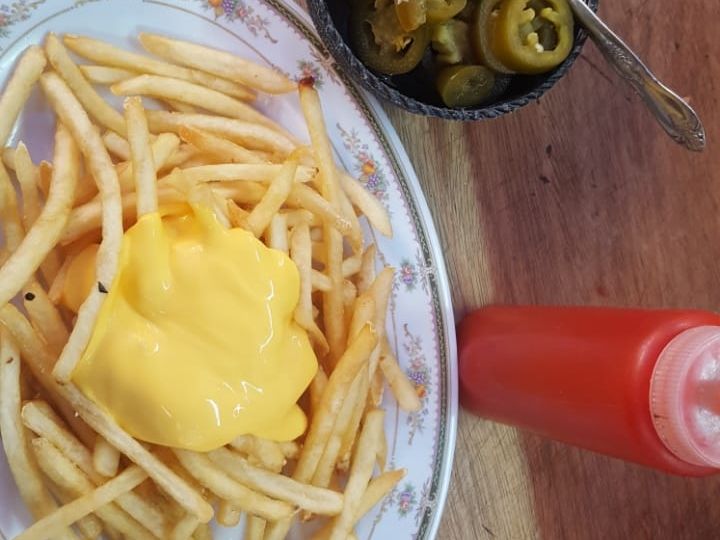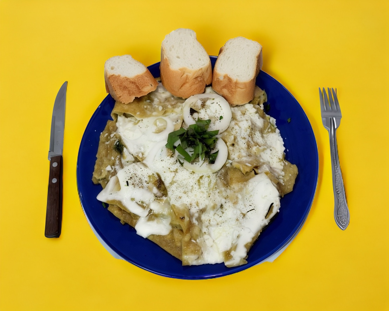 Frijoles, tus chilaquiles favoritos, crema y queso.